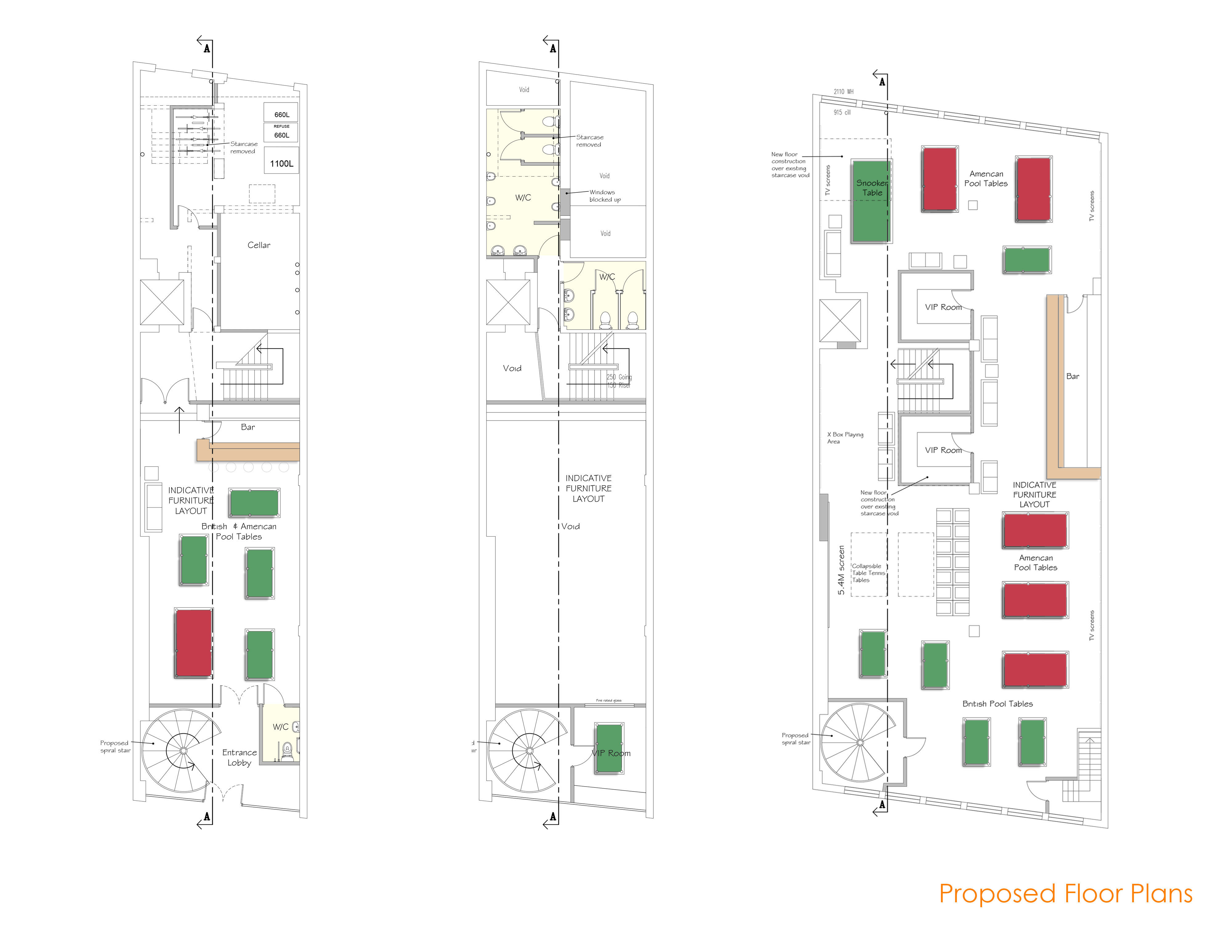 Description: LMA were appointed to provide internal designs for specific functional areas within the building, revised floor layouts to provide efficient space planning and designs for a potential pop up structure on the roof. The proposed change of use to a sports bar drinking establishment with multiple activities such as, pool, darts, table tennis and function rooms will convert this abandoned building into a thriving hub of activity.