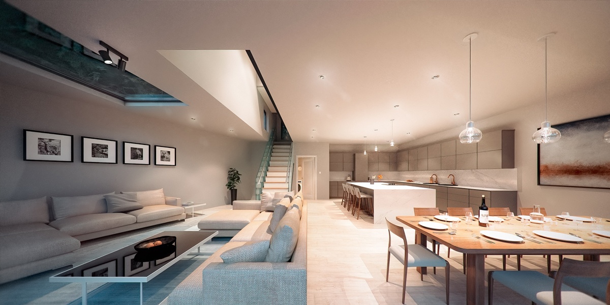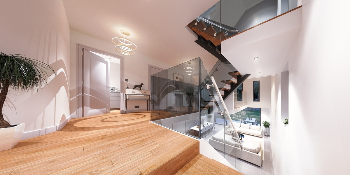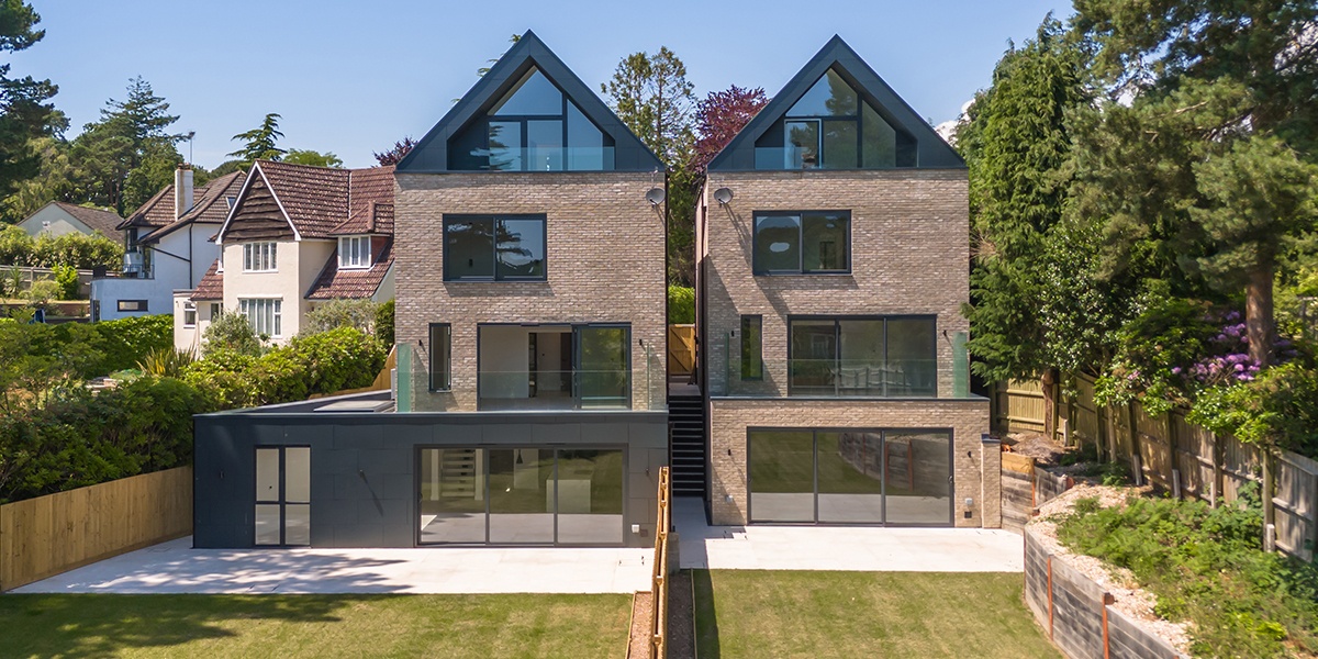 Description: Planning permission has been granted for two new detached houses on a single plot in Lilliput, Poole. The houses are embedded within the landscape with floor levels stepping down at the rear and maximising views outside. The homes feature generous open plan kitchens and living spaces that provide level access out to the gardens. The top floor master bedrooms offer superb views out to Parkstone Golf Course across the treetops.