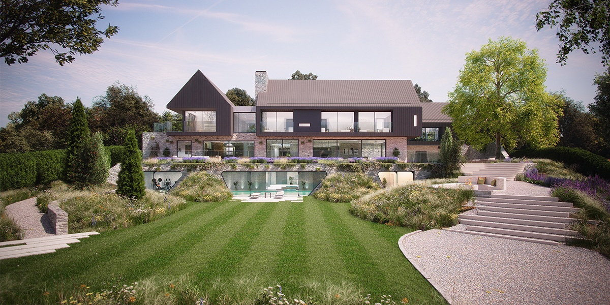 Description: LMA Architects have been commissioned to design an extensive modern superhome for the countryside just outside Salisbury with views out over Salisbury Plain.