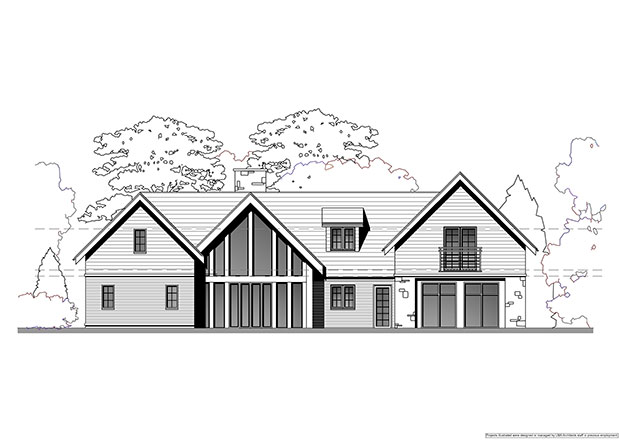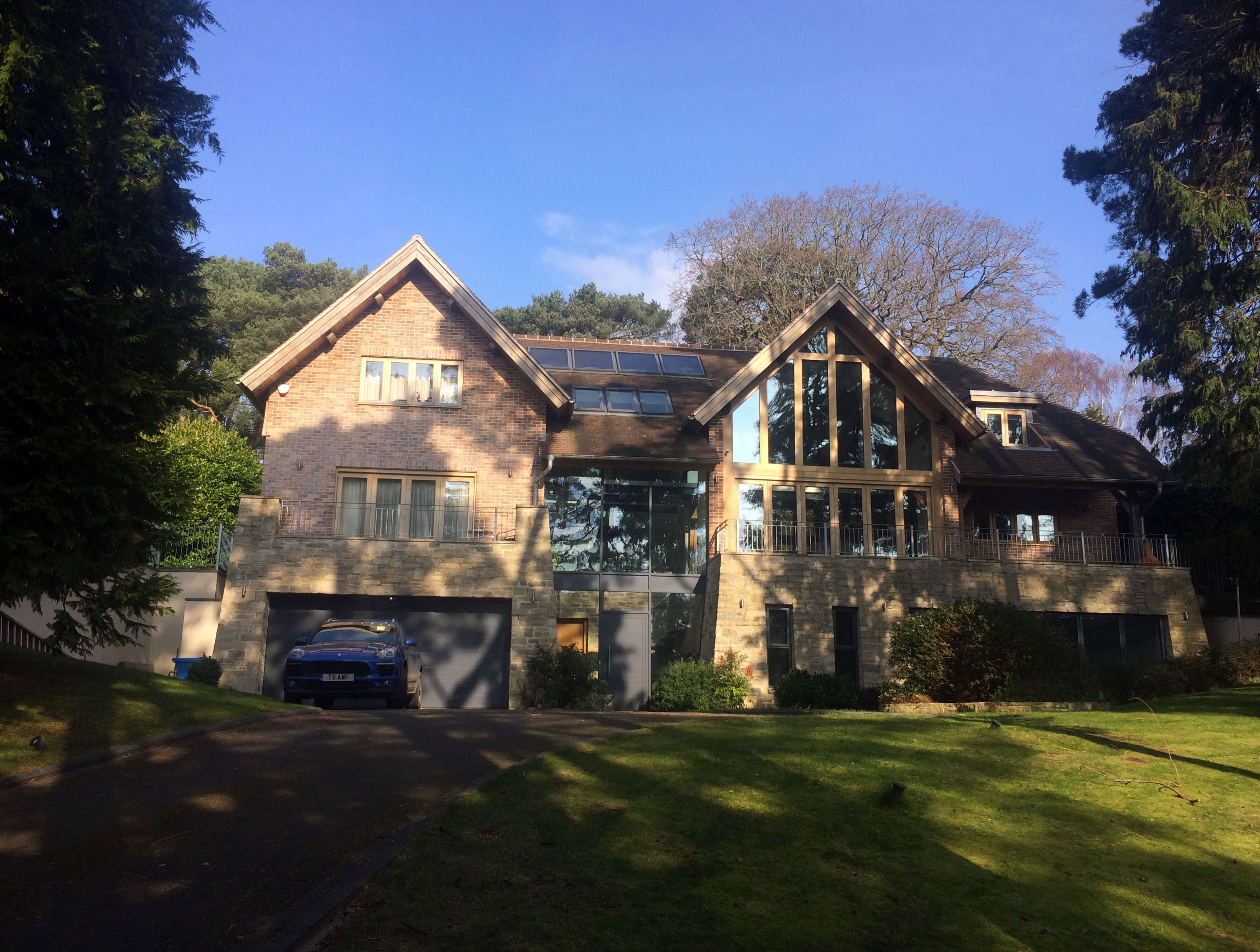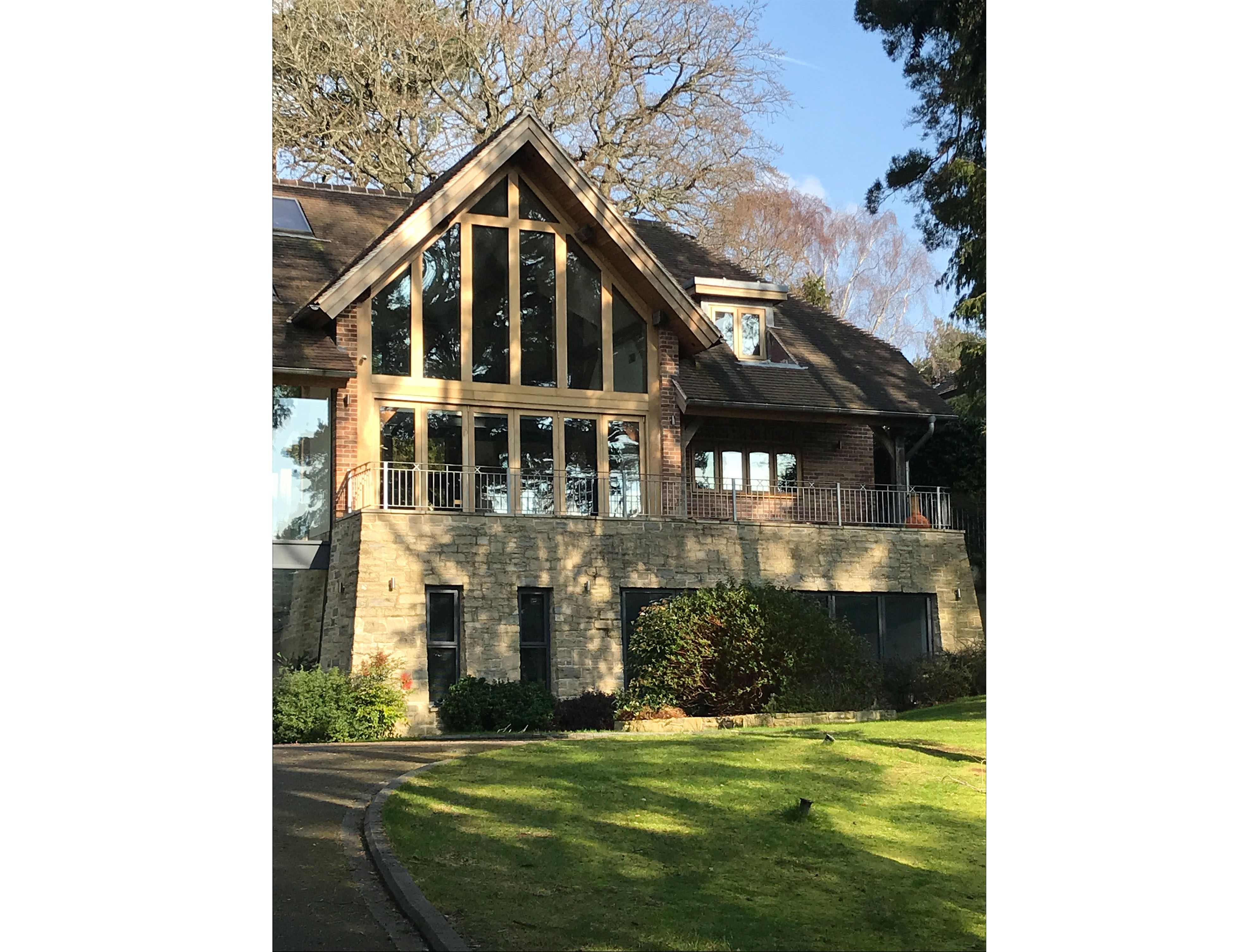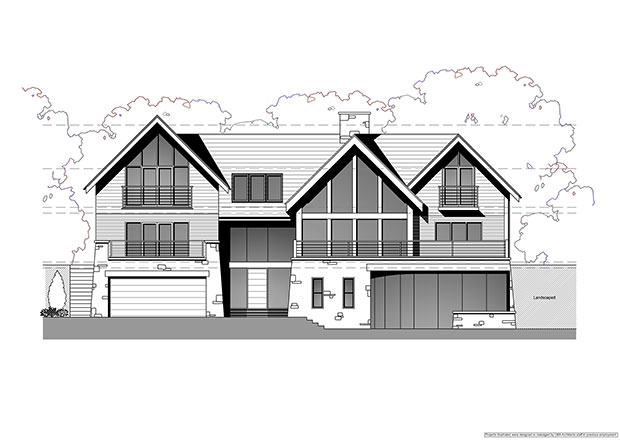 The design had to be considerate of its surroundings, not disrupting any of the existing foliage. Working closely with the client to develop the brief, we produced a scheme that worked well in achieving a large dwelling on a very tight site. Using natural, locally sourced materials, including stone and timber, the design sat well in its surroundings. Using these natural materials to break up the fenestration we managed to break up the mass of the building, helping provide depth and character to the elevations.